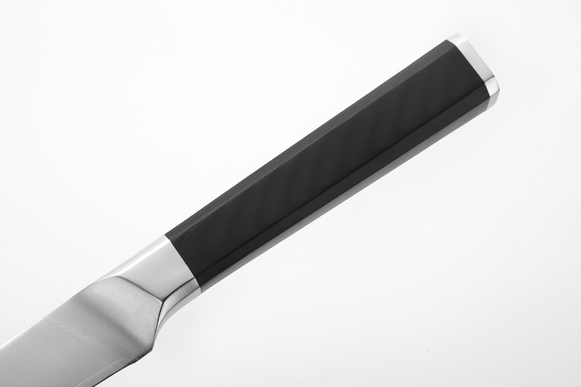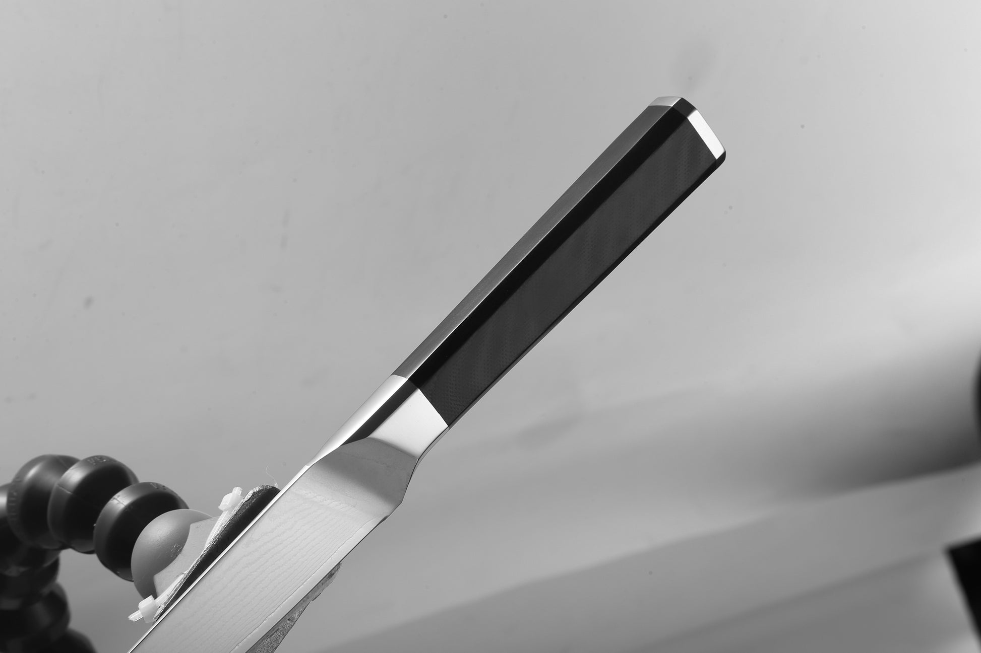 AESTHETIC & ERGONOMIC HANDLE - The beautiful G10 handle creating a simple aesthetic and ensuring comfort and maneuverability. The fully forged full tang delivers maximum strength and perfect balance.