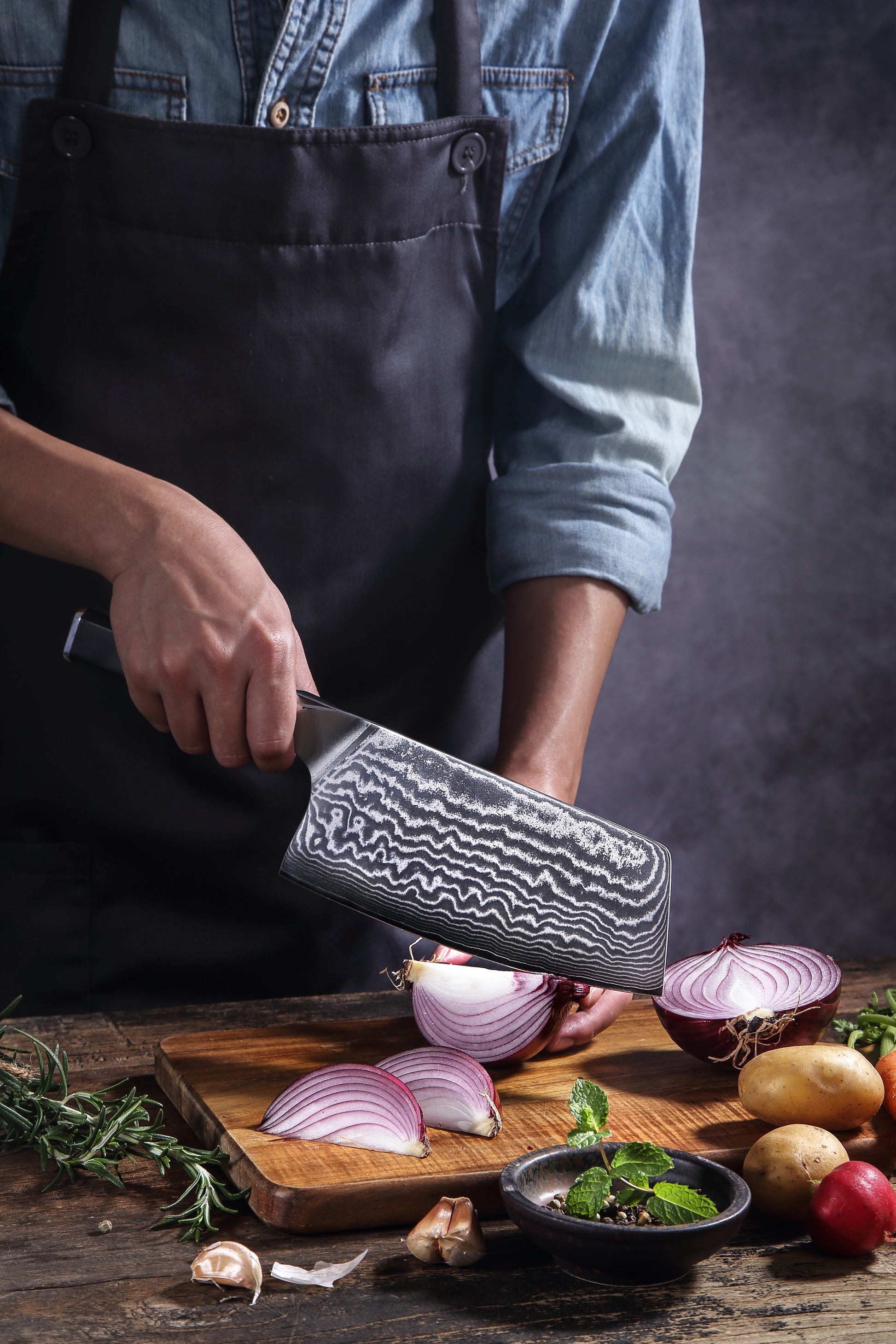 PERMIUM MATERIAL - 7 inch Professional Chopping Cleaver Knife Made of 67 layers permium damascus steel that has wonderful hardness can handle most kitchen tasks, such as cutting, slicing, dicing, and mincing.