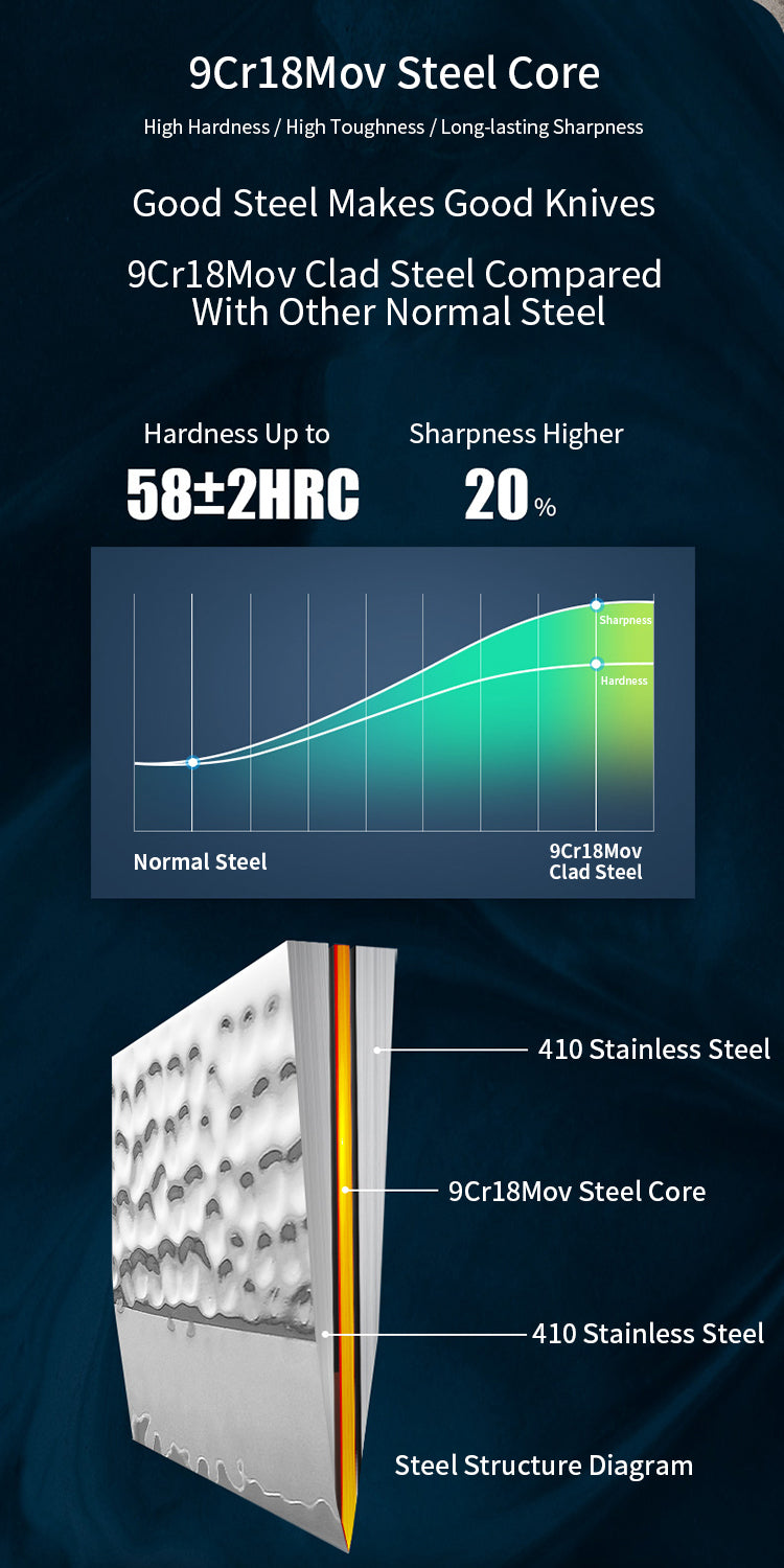 Ultra-Sharp & Durable: The 9cr18Mov high-quality steel core and 9 layers of composite steel provide exceptional sharpness and edge retention, making this knife ideal for precise, professional-grade cooking.