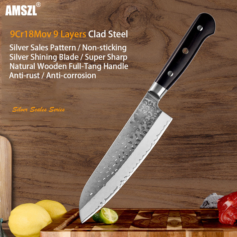 AMSZL Silver Scale Series - 7 inch Santoku Knife, B9-C4