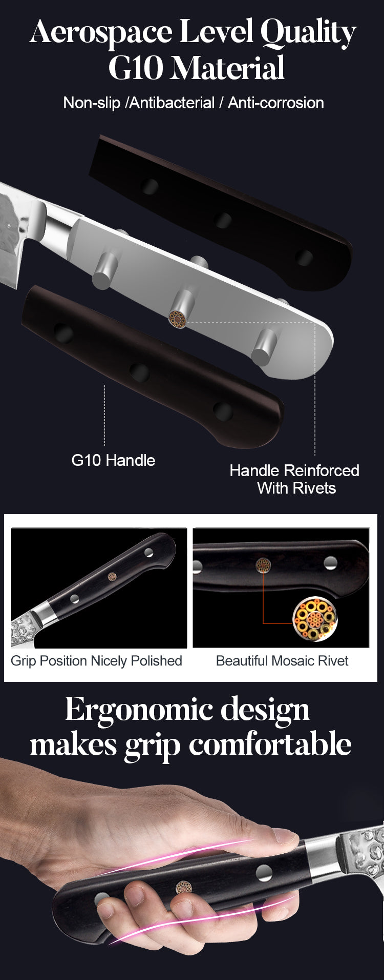 Ultra-Sharp & Durable: The 9cr18Mov high-quality steel core and 9 layers of composite steel provide exceptional sharpness and edge retention, making this knife ideal for precise, professional-grade cooking.
